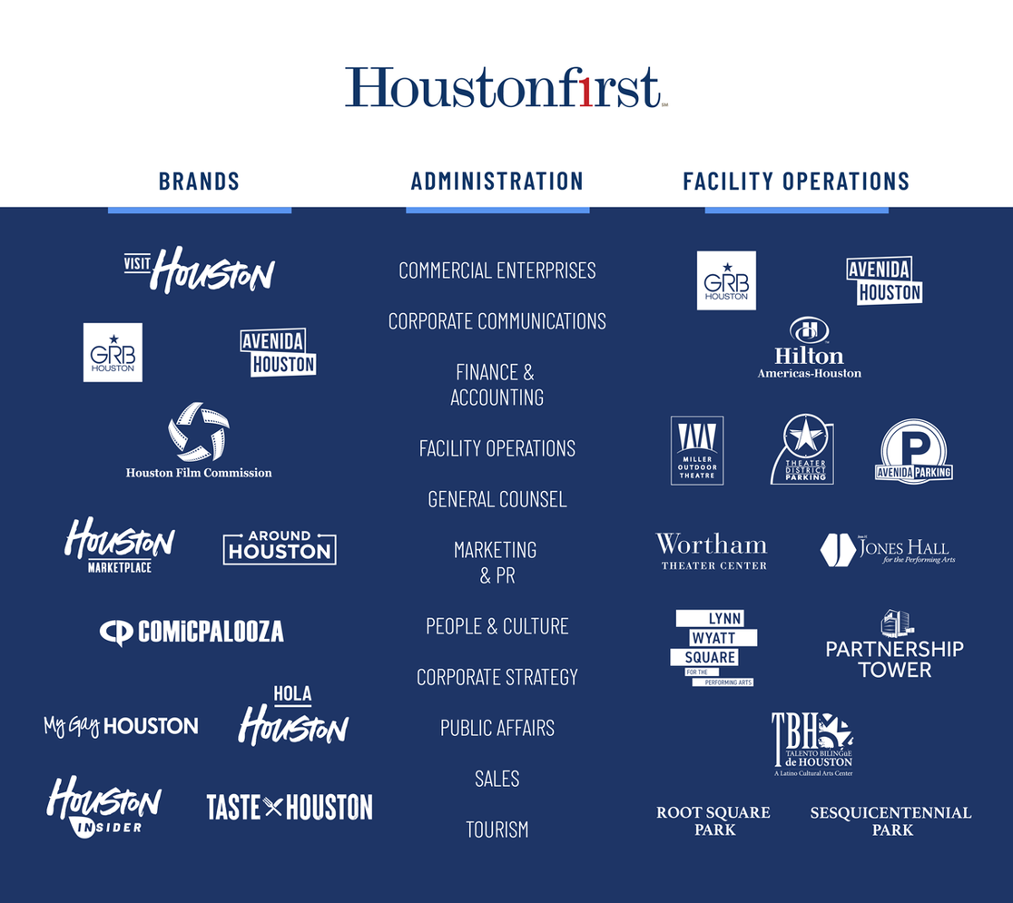 A local government corporation formed in 2011, Houston First’s responsibilities include the development of the destination brand strategy, promoting the city worldwide, driving tourism and convention business, operating numerous facilities, producing events that serve the community, collaborating with commercial and industry partners and much more.